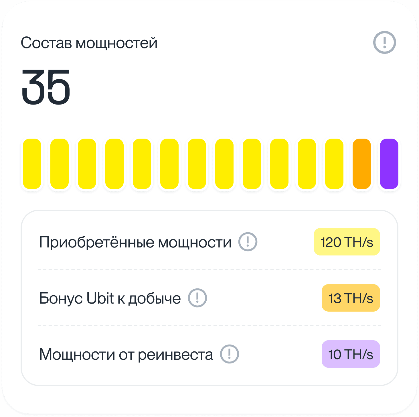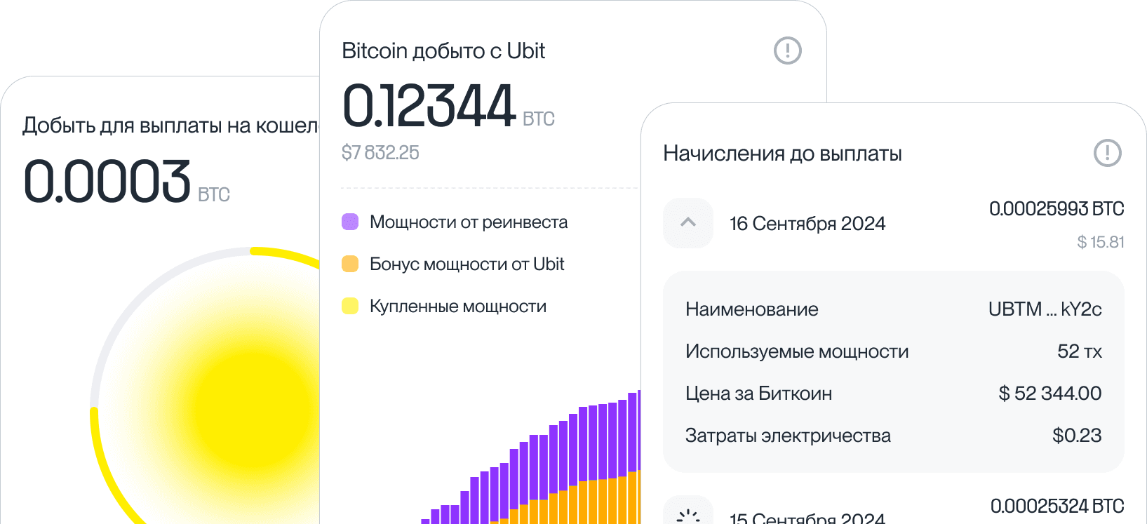 Большое количество оборудования, площадки в разных частях света и многолетний опыт сотрудников дают клиентам Ubit максимальную защищённость и простоту майнинга.