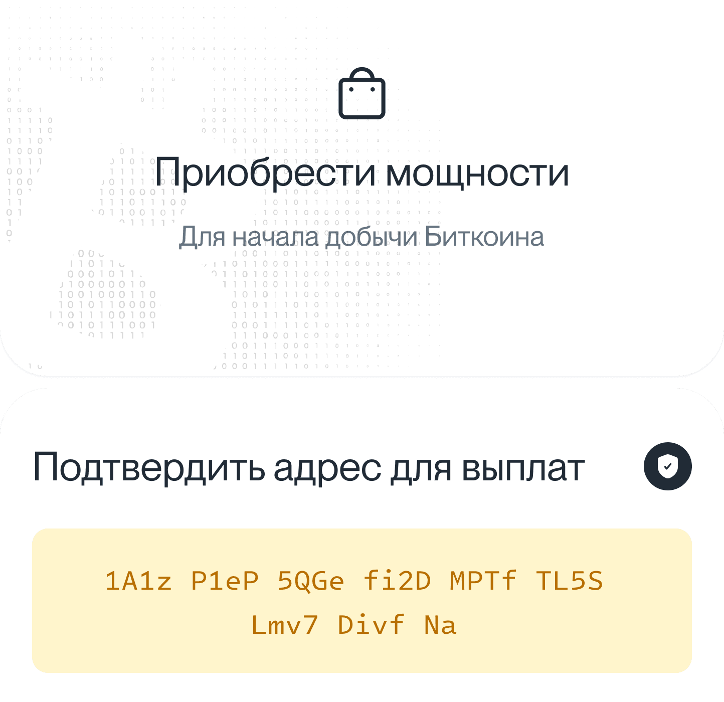 Ключ от криптомира в вашем телефоне. Купить мощности для майнинга, обслуживаемые в наших дата-центрах, и ежедневно получать Биткоин на свой кошелёк.